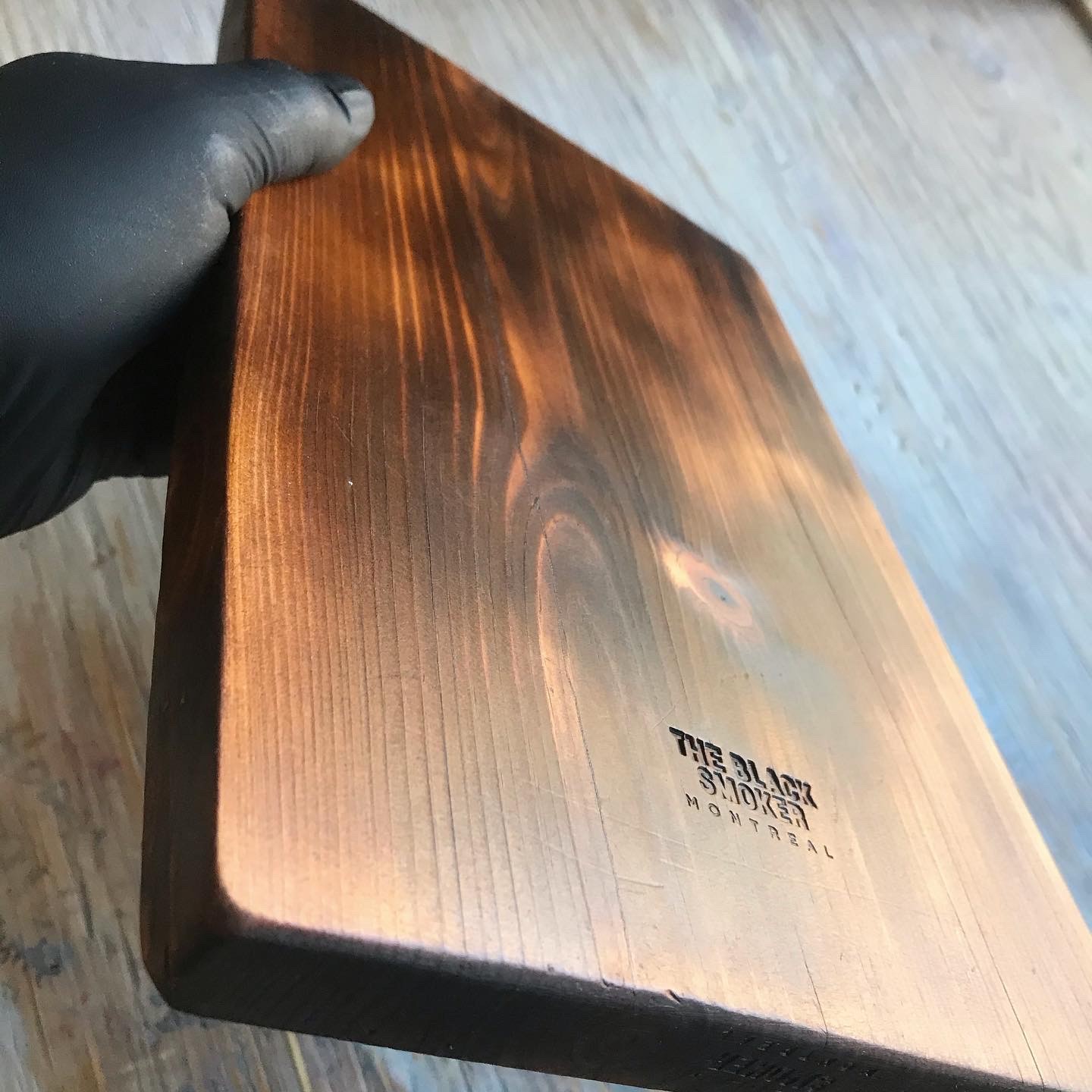Experimenting with different types of wood, making cutting boards. Engraved by burning the Blacksmoker symbol into the wood.