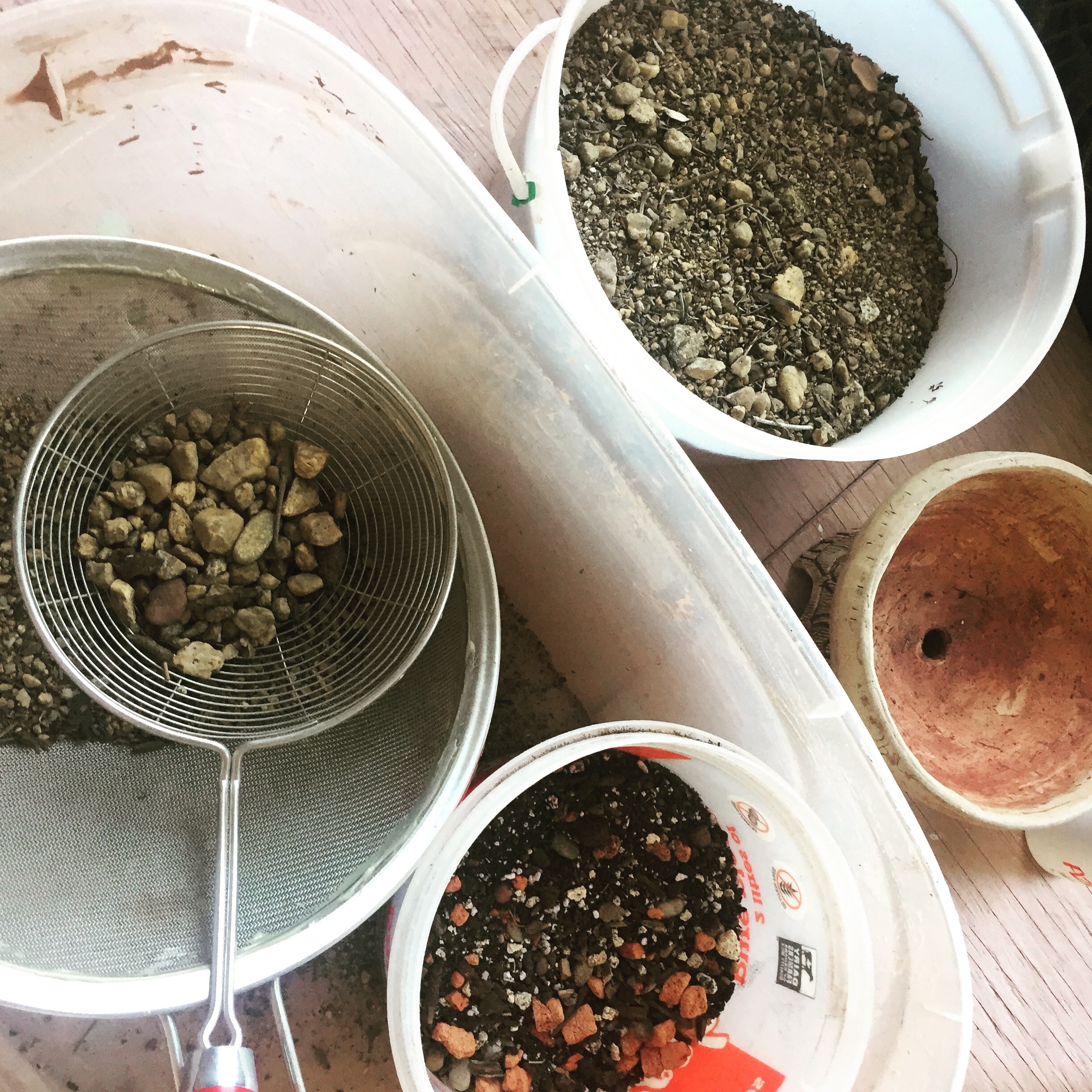 Organizing stones by size to add to different types of soil for plants