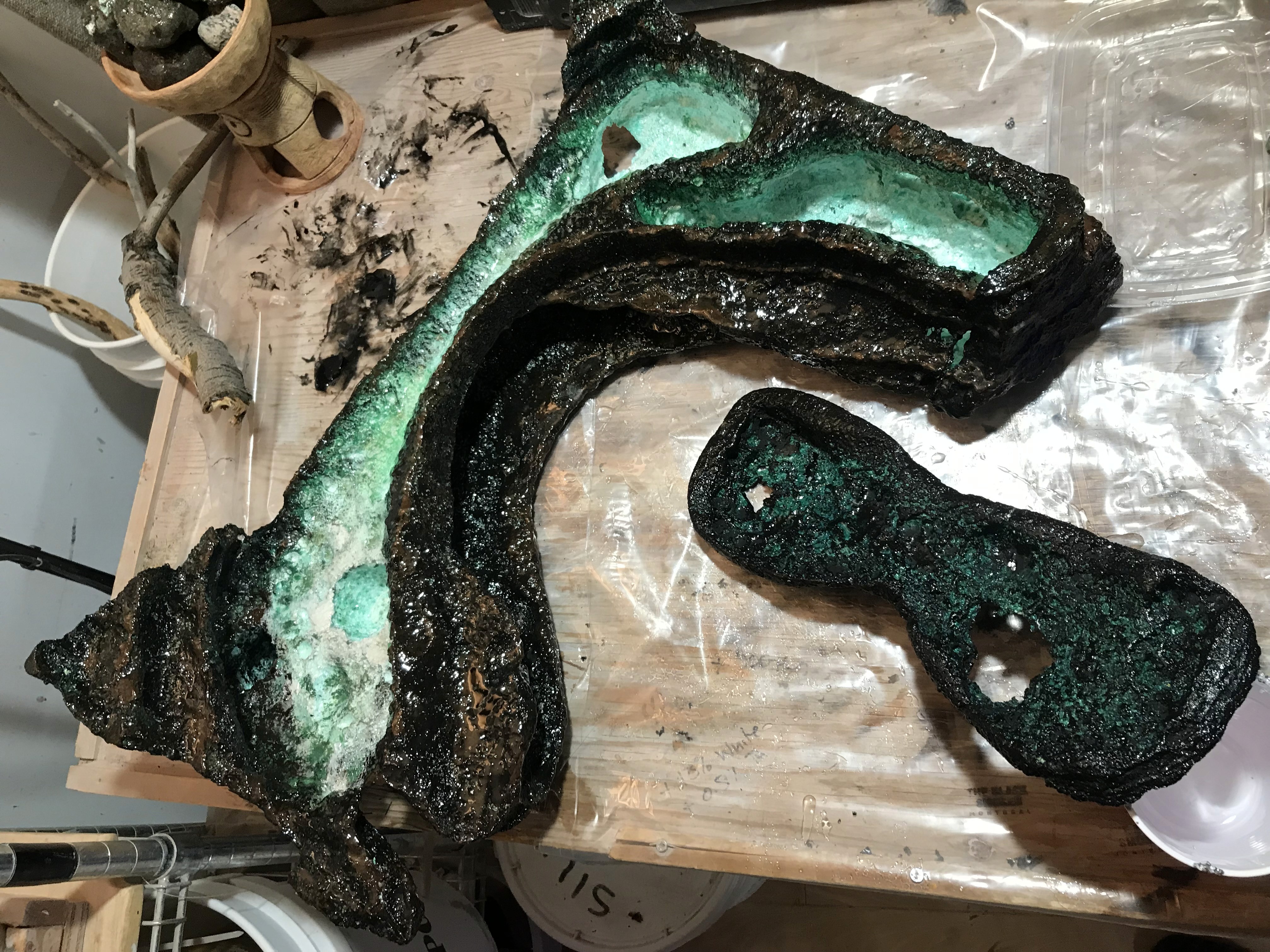Experimenting with epoxy and styrofoam, burning and impermeabilization techniques.