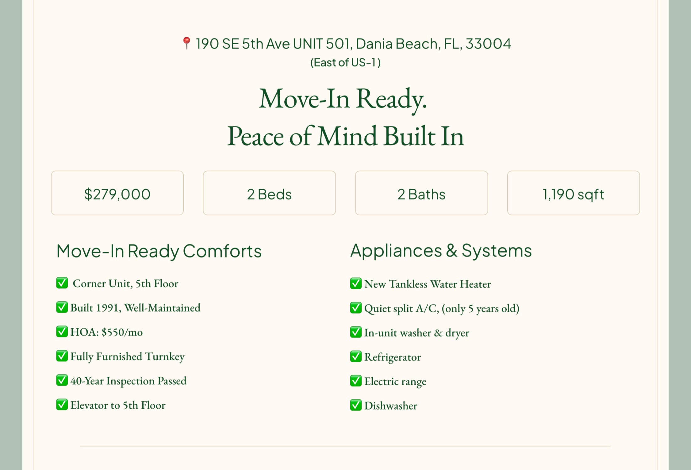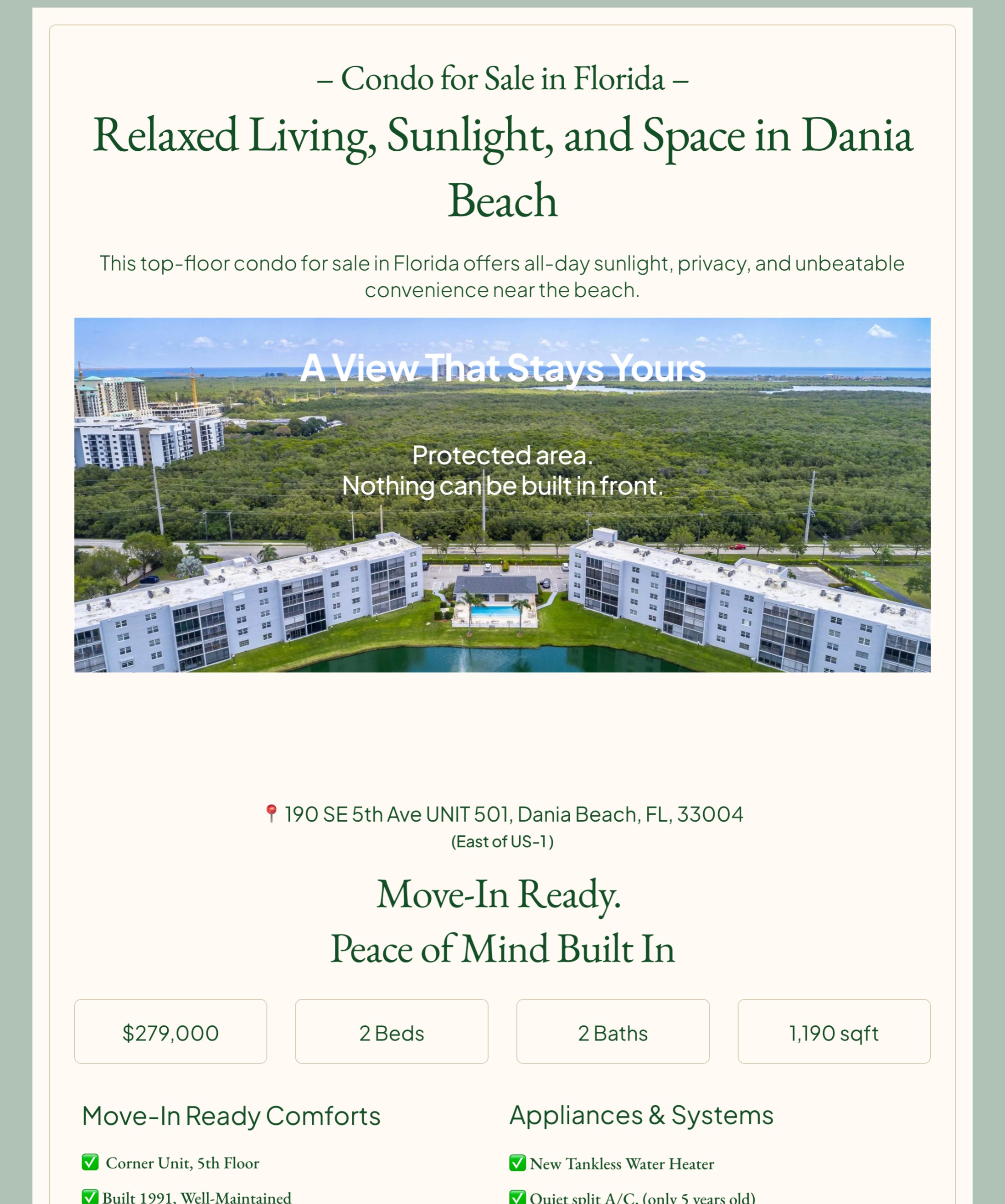 Strategic communication and UX design for selling a Florida condo online, focused on research, trust, and remote decision-making.