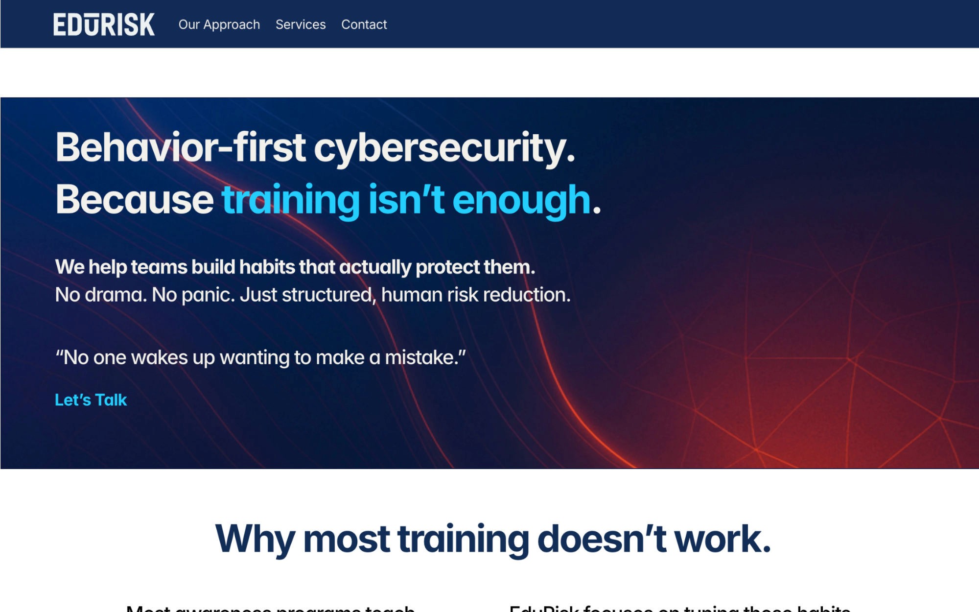Behavior-first communication framework for a cybersecurity consultancy, focused on translating risk into understanding. Most cybersecurity failures are behavioral, not technical.